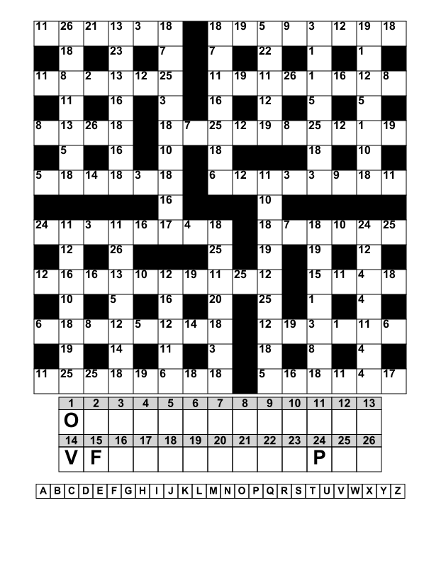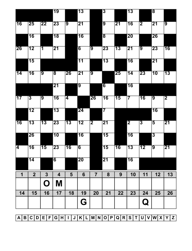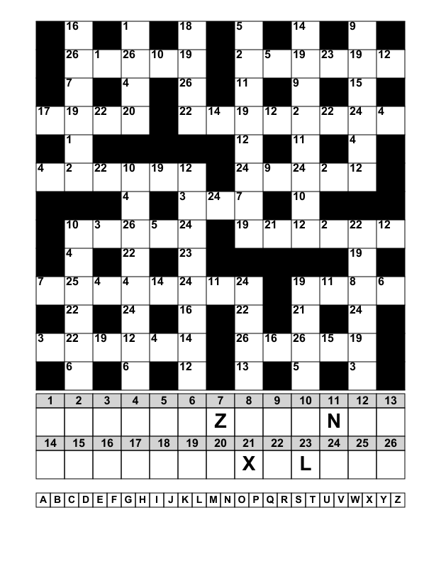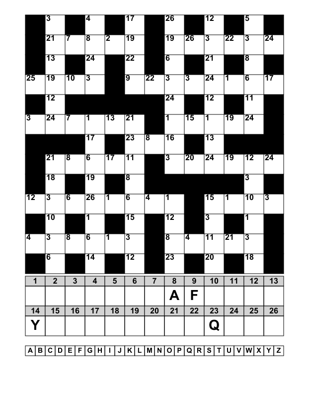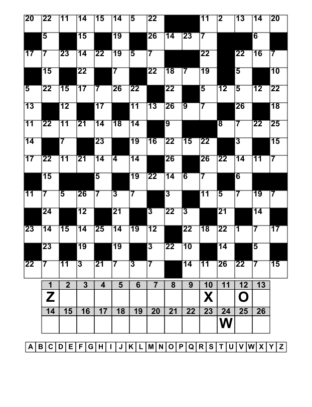 Here, you will find fresh printable codeword puzzle PDFs every week — every Monday a 13x13 grid, every Wednesday a 15x15 grid, and every Friday a even larger grid. Download, print, and enjoy!