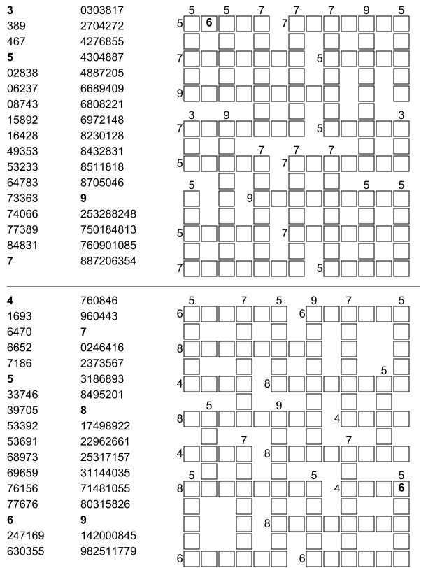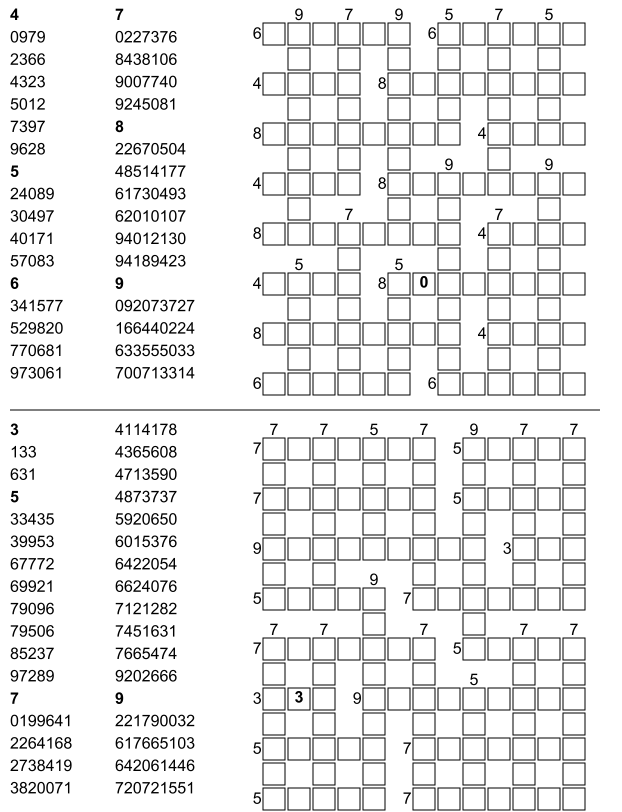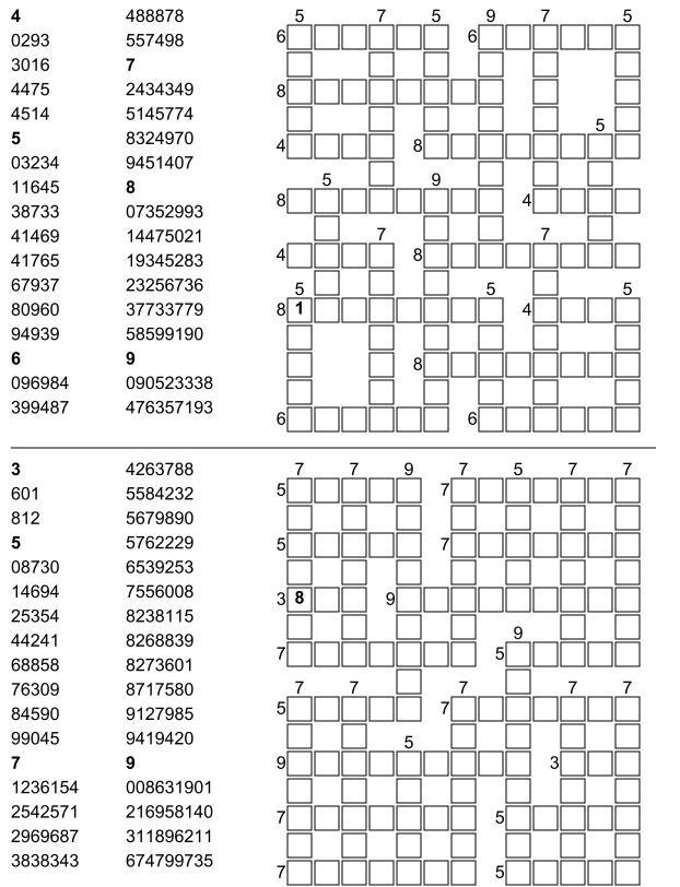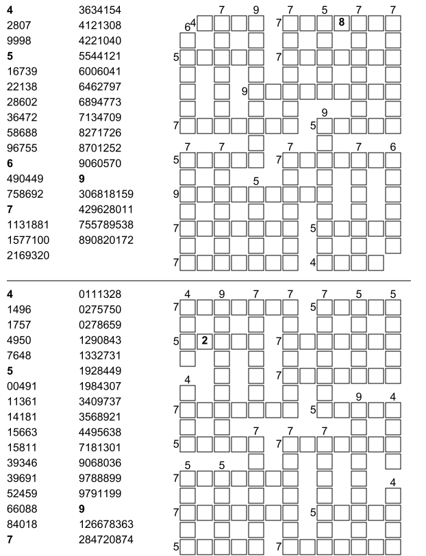 Entdecken Sie unsere große Auswahl an Zahlen-Gitterrätseln zum Ausdrucken! Statt mit Wörtern lösen Sie diese spannenden Rätsel mit Zahlen. Diese unterhaltsame Variation sorgt für besonderen Rätselspaß – perfekt für zu Hause, in der Schule oder unterwegs. Laden Sie die Zahlen-Gitterrätsel kostenlos als praktische PDF-Dateien herunter und drucken Sie sie aus!