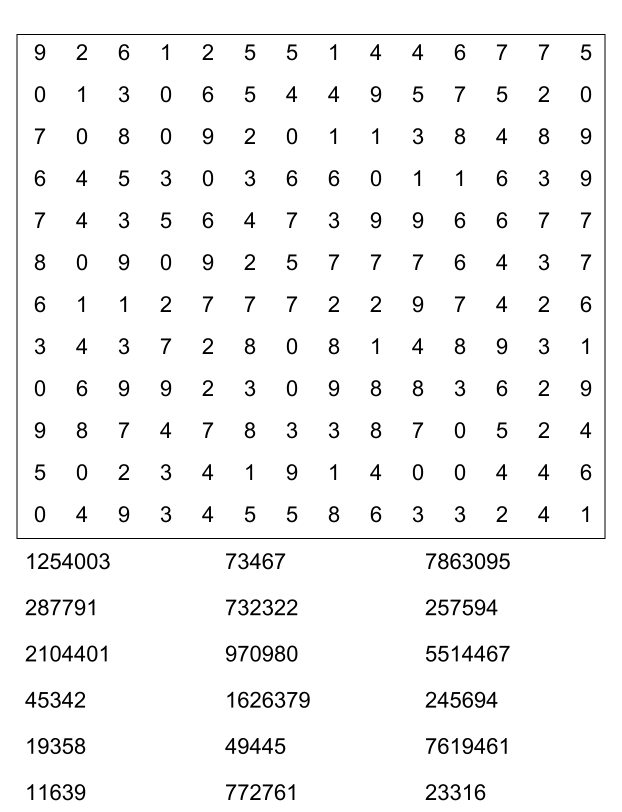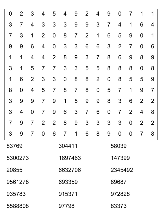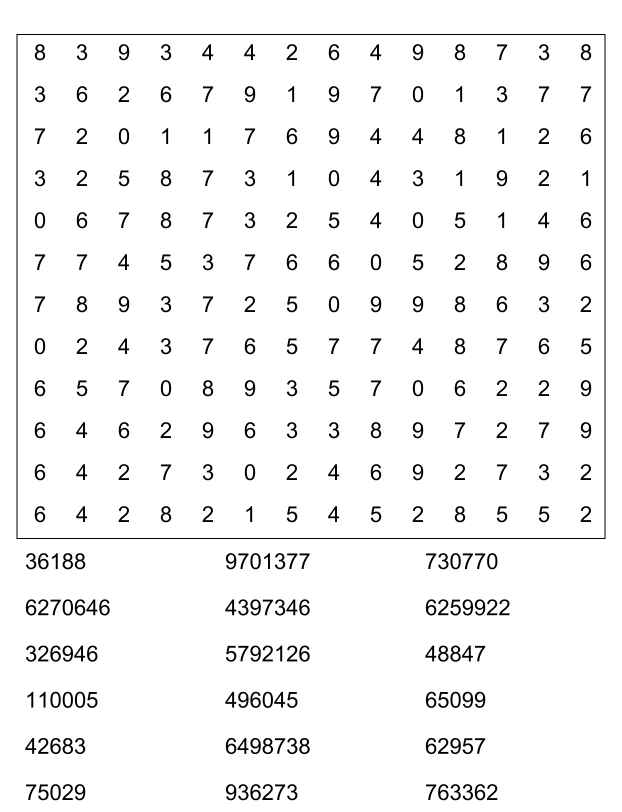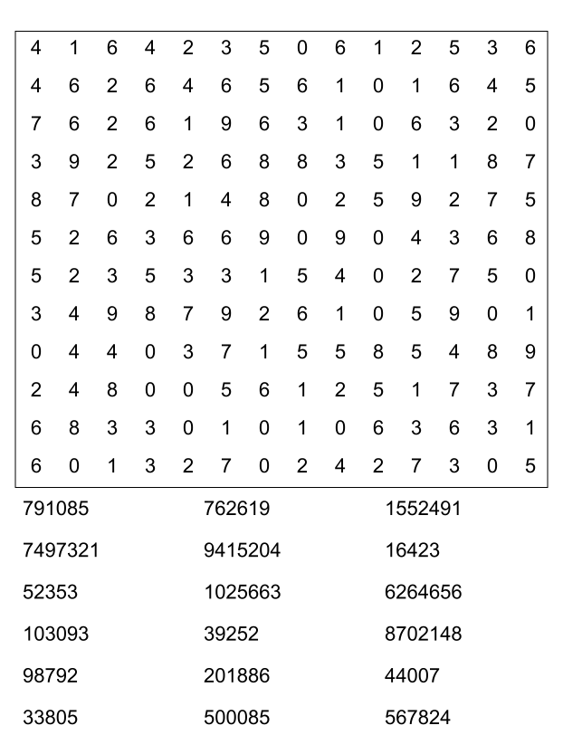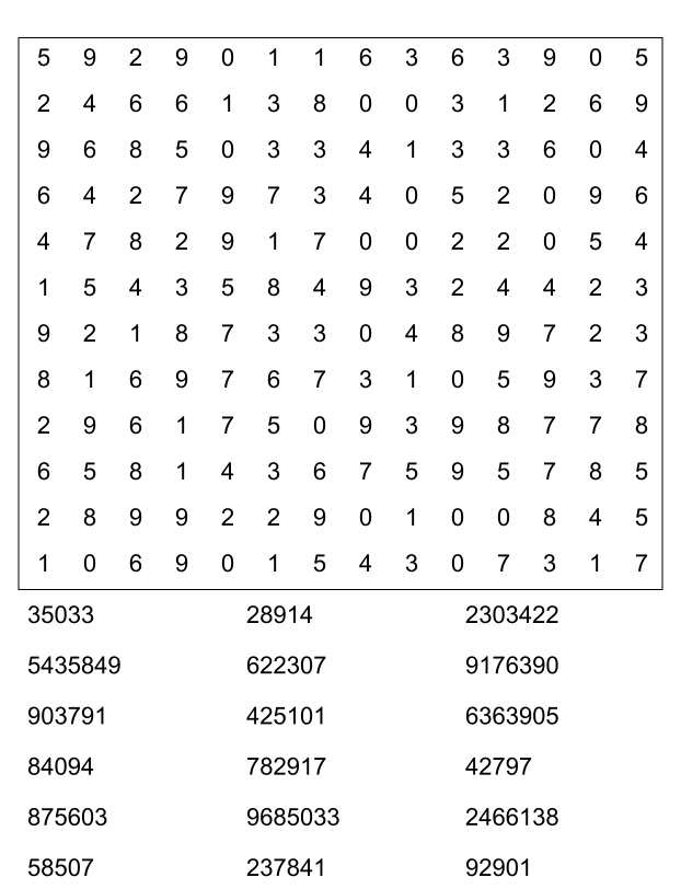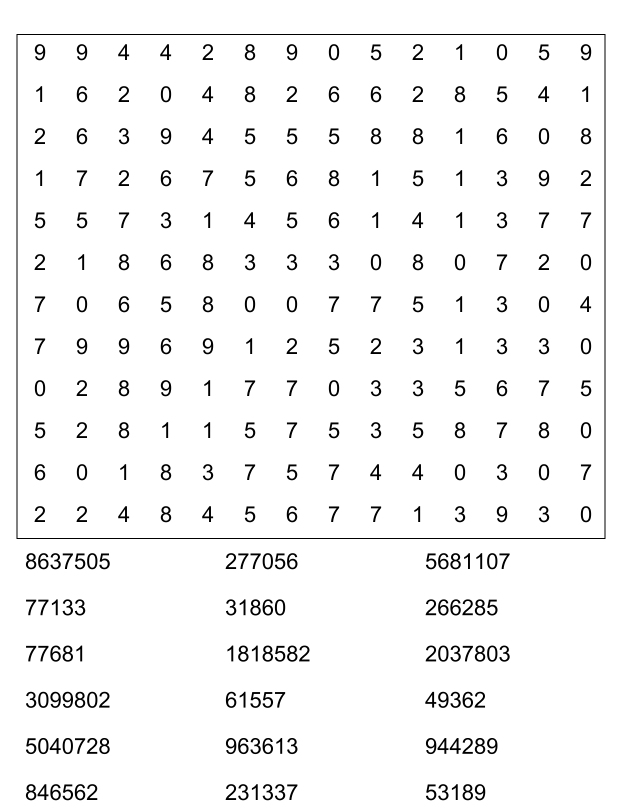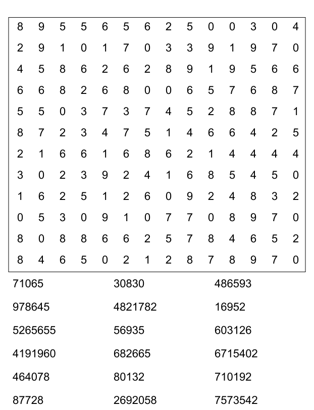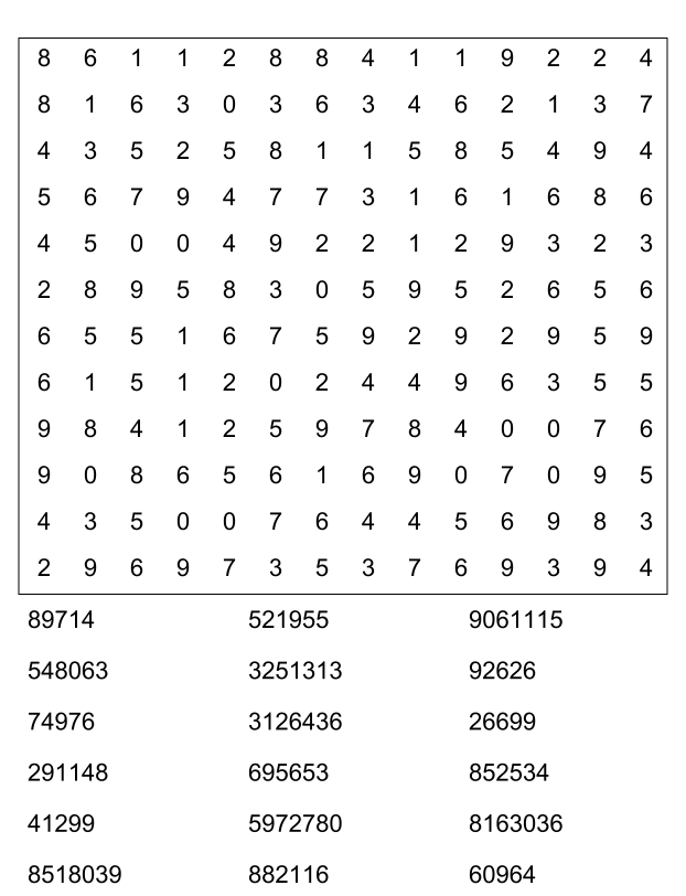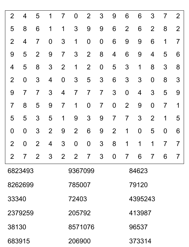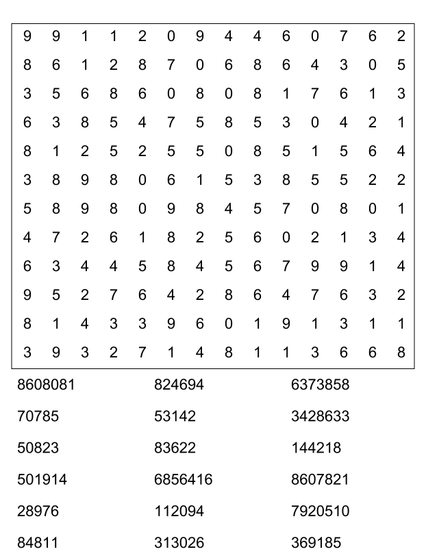 Sopa de números (sopa de letra de numeros) para imprimir pdf