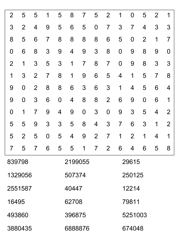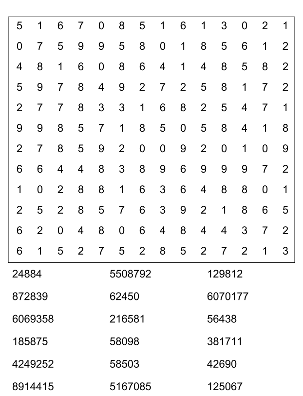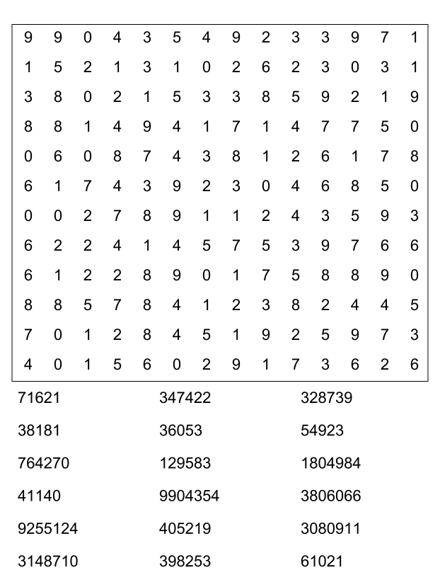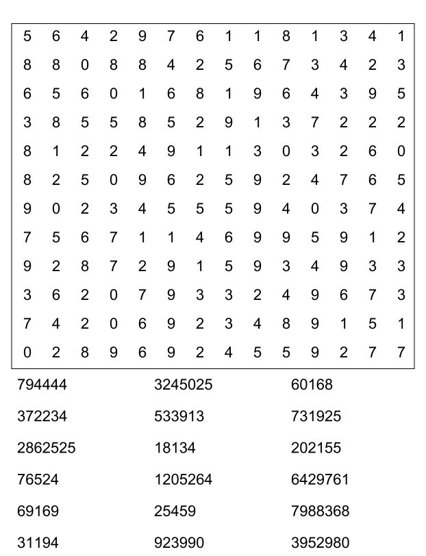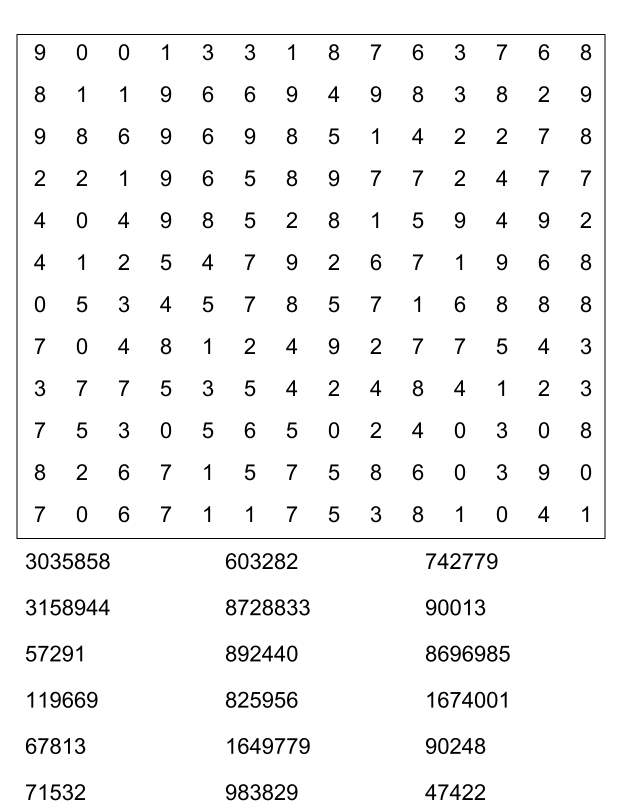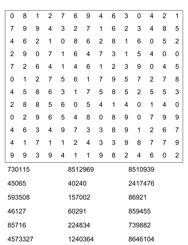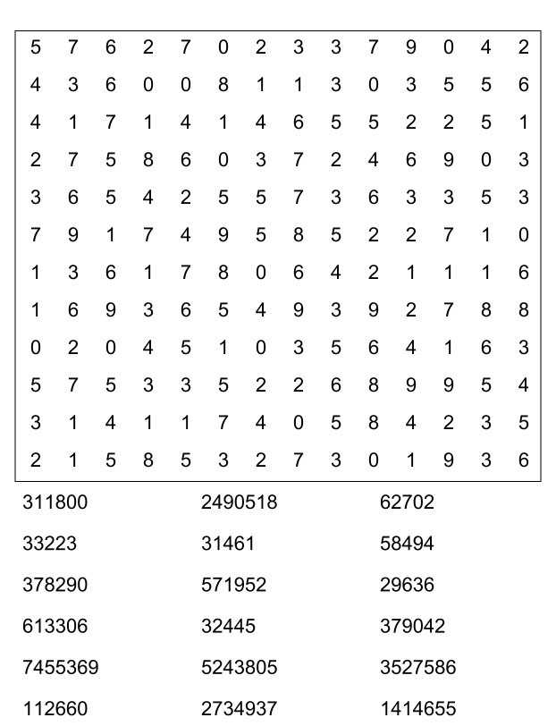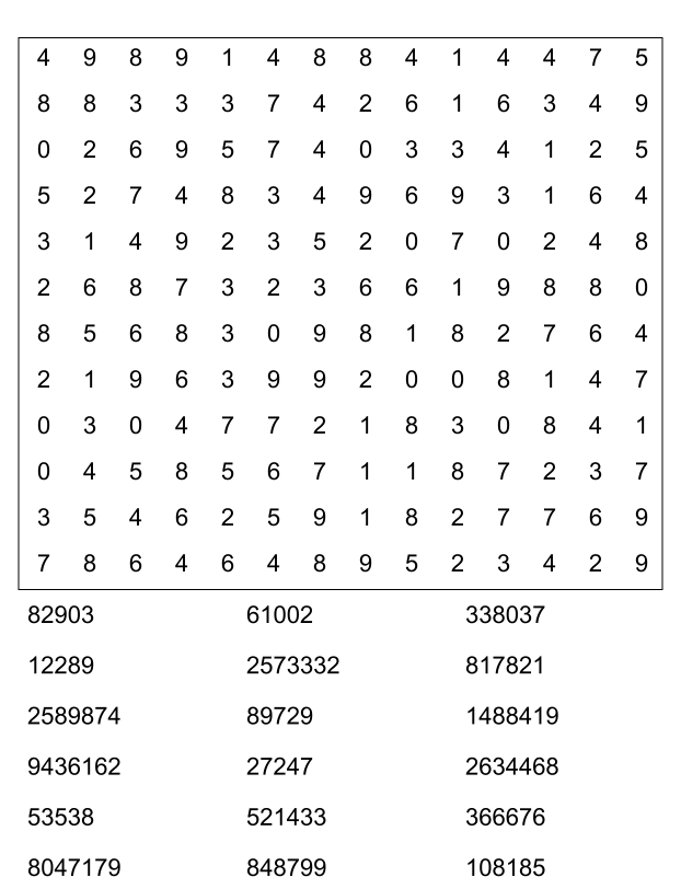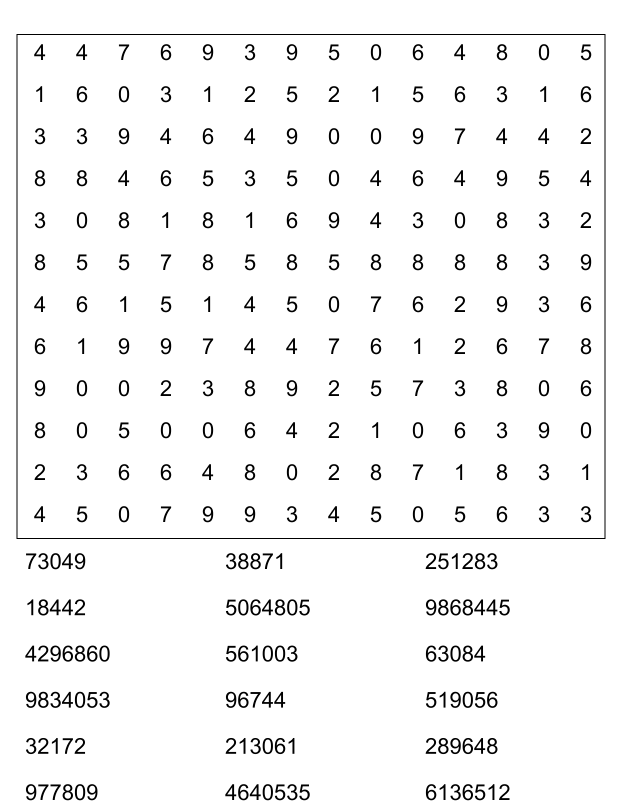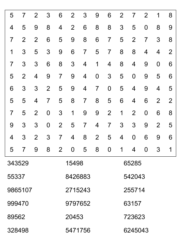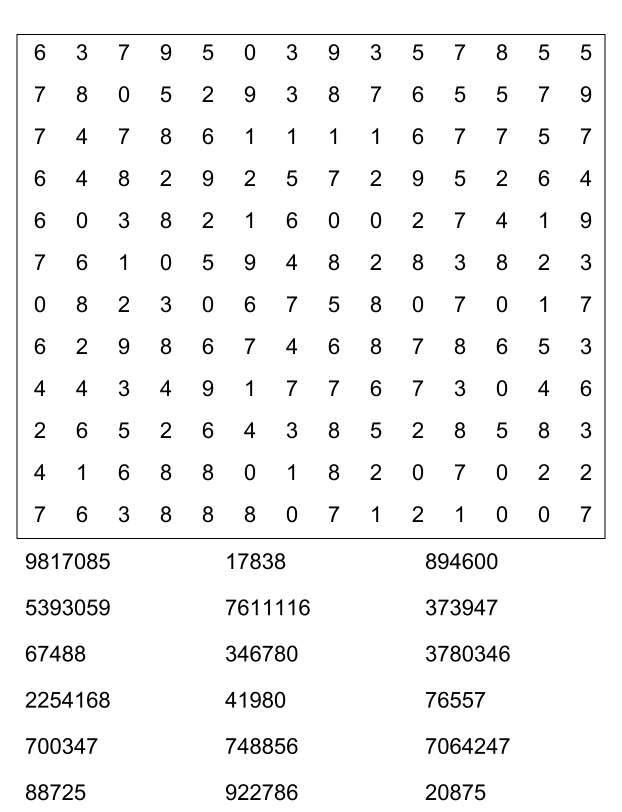 Sopa de números (sopa de letra de numeros) para imprimir pdf