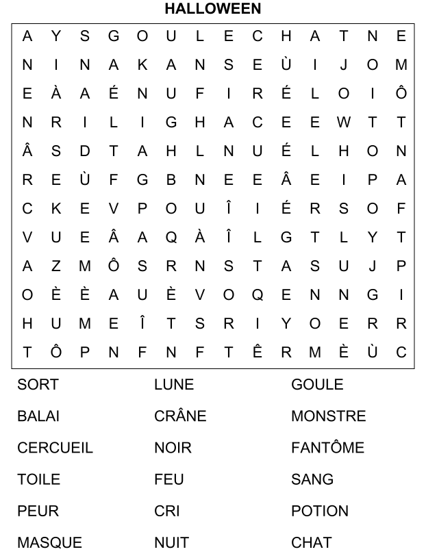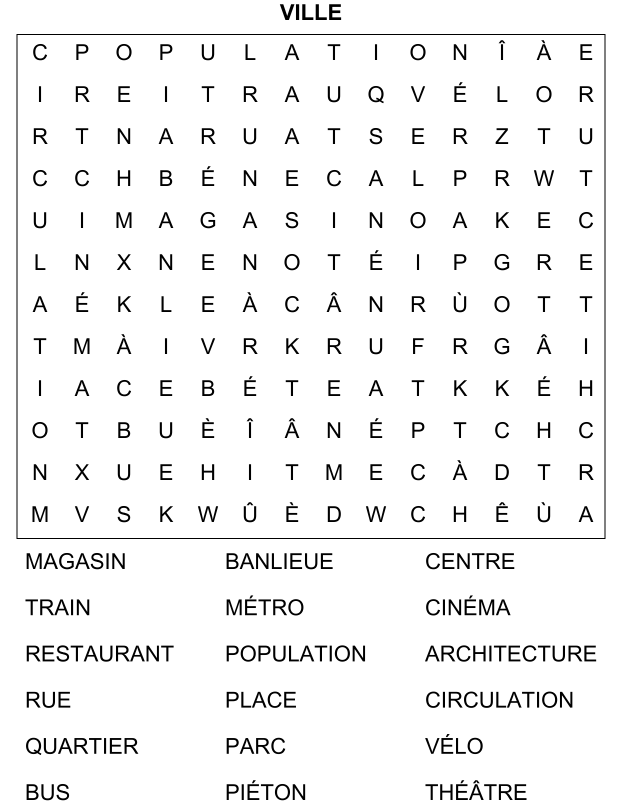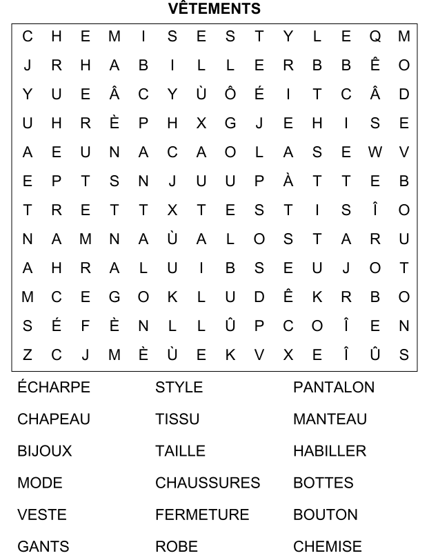 Mots mêlés (mots cachés) gratuites à télécharger au format pdf
