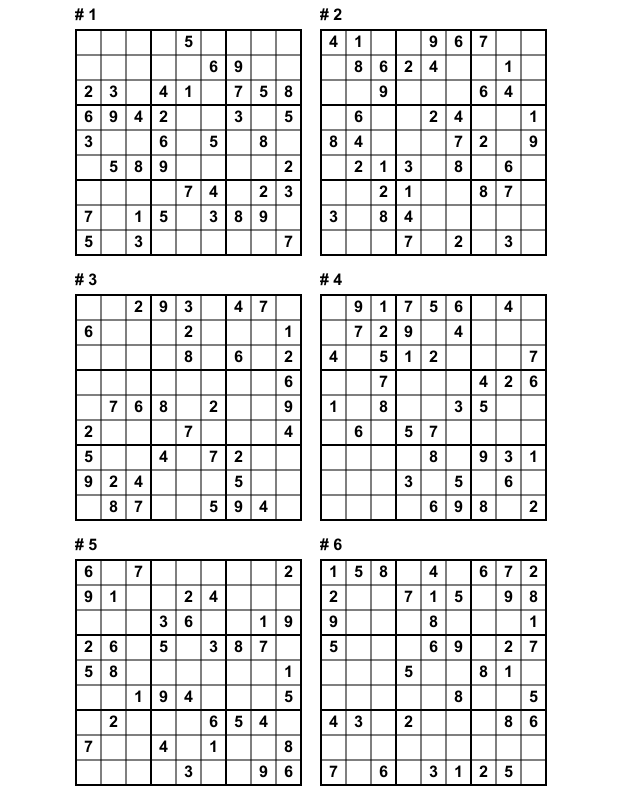 N'attendez plus, commencez à imprimer sudoku facile et découvrez toute la gamme de nos puzzles à imprimer. Nous offrons un large choix de sudoku gratuit imprimable, sudoku à imprimer gratuitement et sudoku à imprimer pdf, afin que l'accès aux sudoku gratuits soit le plus simple possible. Téléchargez et imprimer sudoku à imprimer facile et profitez d'heures de divertissement logique avec nos grilles variées !