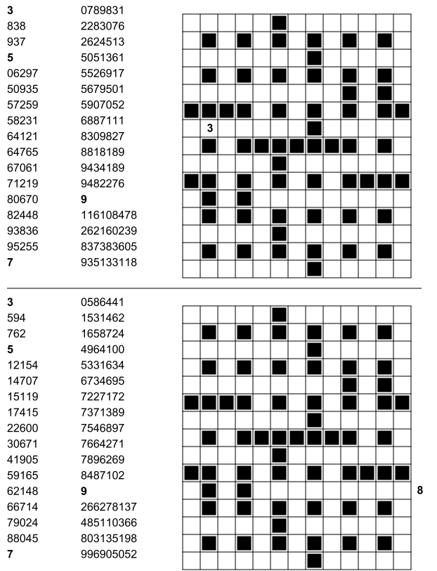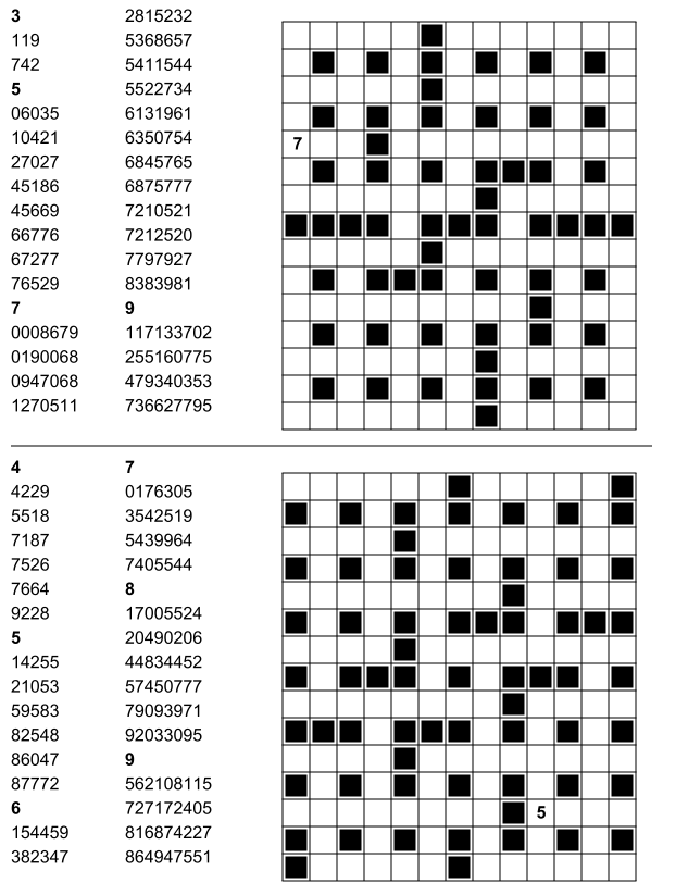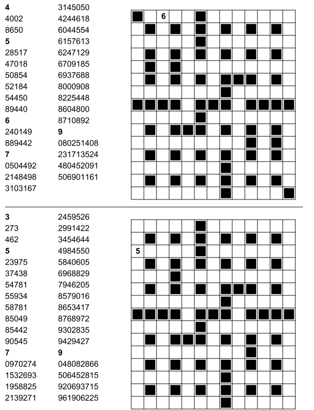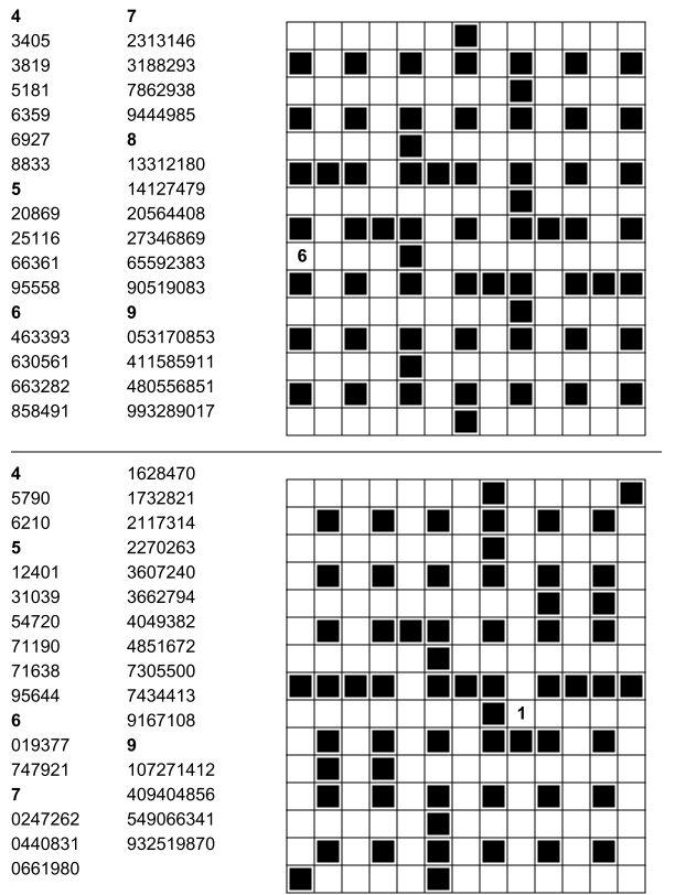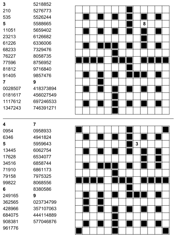 Benvenuti nell'avvincente universo dei Crucintarsi Numerici, una variante stimolante e originale dei classici crucintarsi! Se siete appassionati di enigmi logici e amate mettere alla prova le vostre abilità con i numeri, siete nel posto ideale. In questa sezione, vi immergerete in un mondo di schemi unici dove, invece delle parole, dovrete posizionare strategicamente delle cifre per completare la griglia. Dovrete riempire la griglia con i numeri forniti, seguendo precise regole logiche e schemi prestabiliti. Preparatevi a sfide intellettuali coinvolgenti e a ore di divertimento assicurato mentre vi cimentate nella risoluzione di questi Crucintarsi Numerici, un passatempo che stimola la mente e offre una gratificante sensazione di successo ad ogni schema completato! Esplorate la nostra collezione e iniziate subito a giocare!