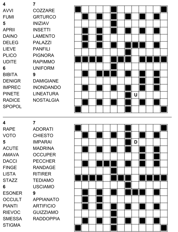 Benvenuti nell'affascinante mondo dei Crucintarsi! Se siete appassionati di enigmi logici e cercate un passatempo stimolante e divertente, siete nel posto giusto. Scoprite la nostra collezione di crucintarsi gratis, ora anche disponibili in formato PDF! Preparatevi a mettere alla prova la vostra mente con questo gioco unico, scaricando e stampando i vostri schemi preferiti. Qui troverete una fonte inesauribile di crucintarsi per ogni livello di abilità, tutti pronti per essere giocati e risolti comodamente su PDF!