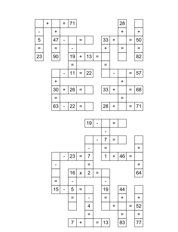 Transform learning addition, subtraction and multiplication into an exciting adventure with our collection of free math crossword puzzles that make mathematics both educational and entertaining. Our printable PDF worksheets combine the classic appeal of crosswords with essential math skills, creating cool and interactive experiences for all ages.