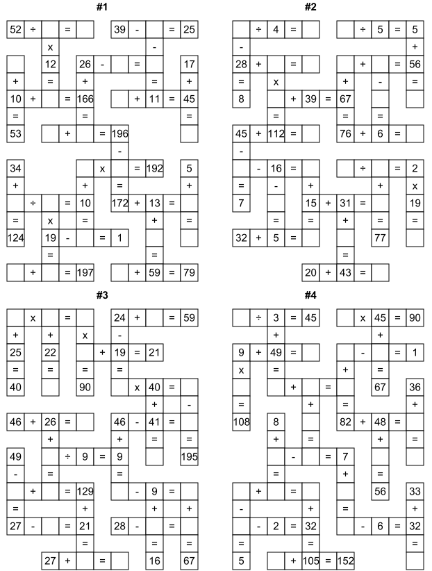 Each crossword mathematics worksheet comes complete with answers, making them ideal for classroom use or home practice. Adults can also enjoy these brain-training puzzles as an excellent way to keep their minds sharp while working with mathematical concepts in an engaging format.