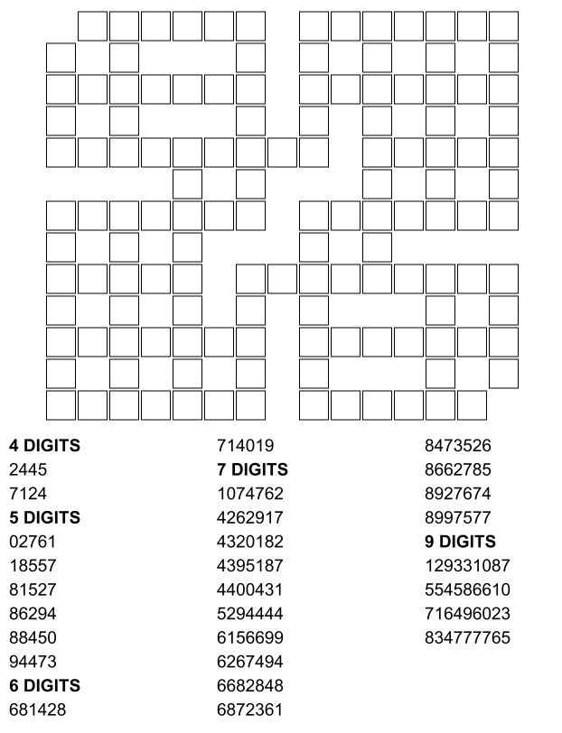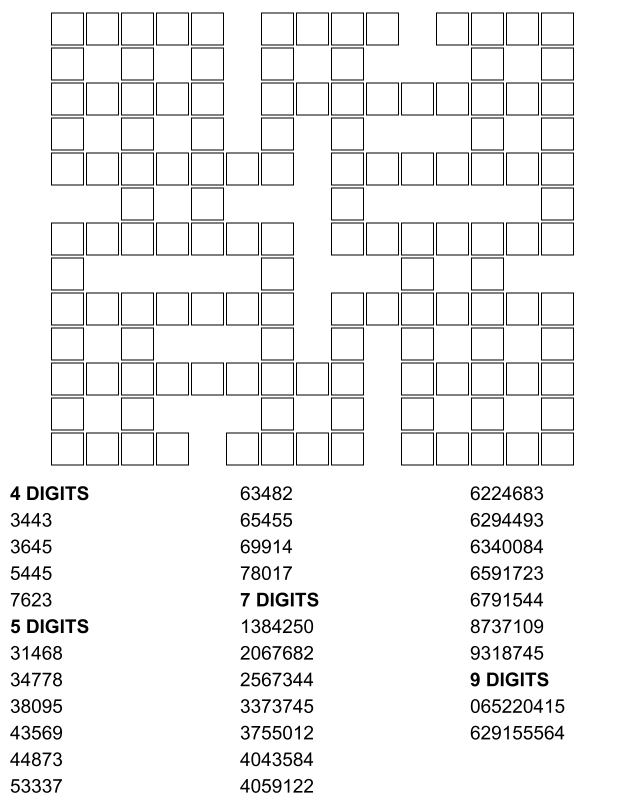 Number Kriss Kross free PDF printables
