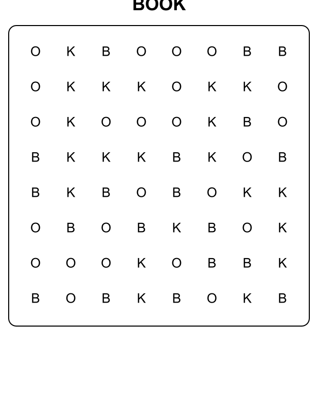 Each puzzle contains exactly one occurrence of the target word hidden in the grid (palindromes may appear twice when read in different directions). The word can be placed in any of 8 possible directions: Horizontal: Left to right → Horizontal reverse: Right to left ← Vertical: Top to bottom ↓ Vertical reverse: Bottom to top ↑ Diagonal: Top-left to bottom-right ↘ Diagonal reverse: Bottom-right to top-left ↖ Diagonal: Top-right to bottom-left ↙ Diagonal reverse: Bottom-left to top-right ↗
