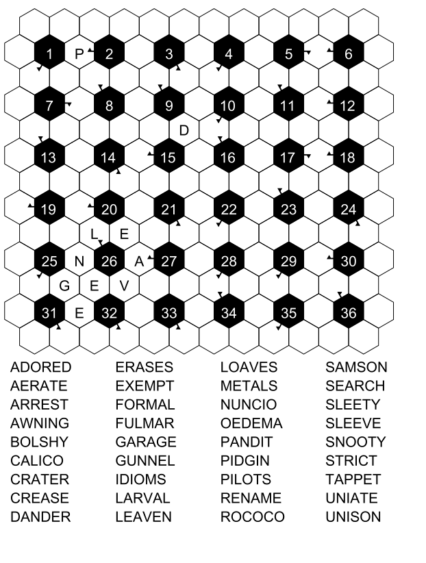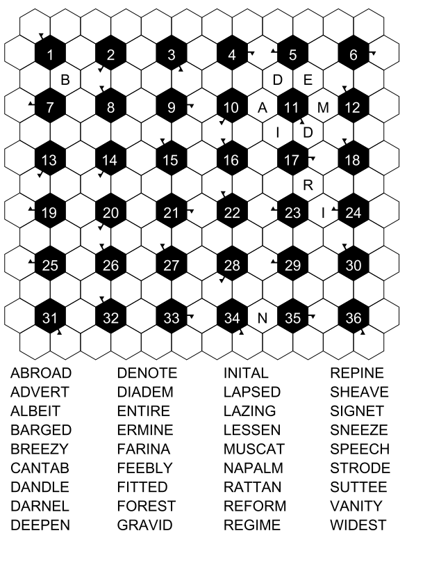 Here, you will find fresh printable word fill-in PDFs every week — every Monday a 15x15 grid, every Wednesday a 21x21 grid, and every Friday a honeycomb-shaped grid. If you like these samples and there aren't enough for you, you can buy our printables or our paperbacks, which are available on Amazon.