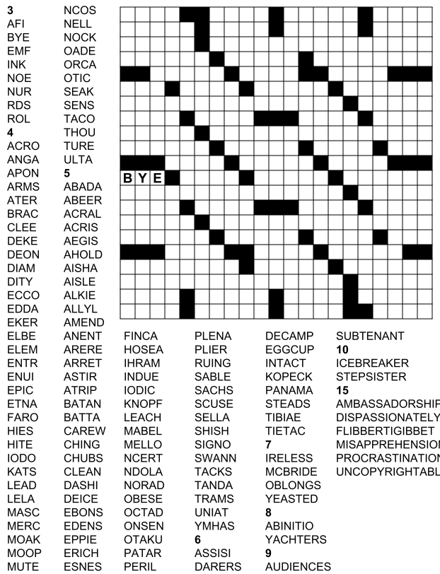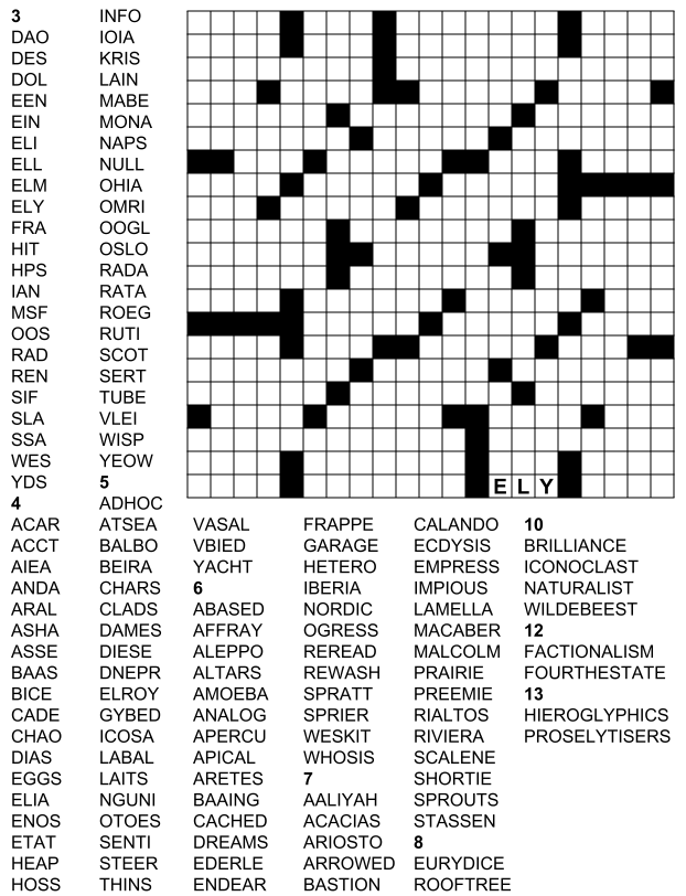 Try our unique free collection of crossword fill in printable with two sizes - 15x15 and 21x21!