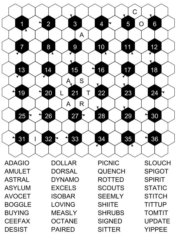 Here, you will find fresh printable word fill-in PDFs every week — every Monday a 15x15 grid, every Wednesday a 21x21 grid, and every Friday a honeycomb-shaped grid. If you like these samples and there aren't enough for you, you can buy our printables or our paperbacks, which are available on Amazon.