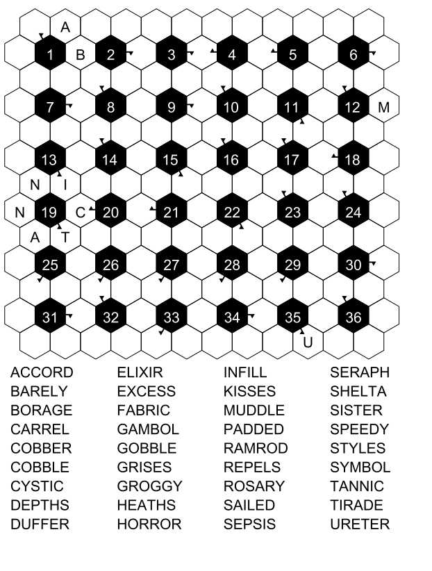 Here, you will find fresh printable word fill-in PDFs every week — every Monday a 15x15 grid, every Wednesday a 21x21 grid, and every Friday a honeycomb-shaped grid. If you like these samples and there aren't enough for you, you can buy our printables or our paperbacks, which are available on Amazon.