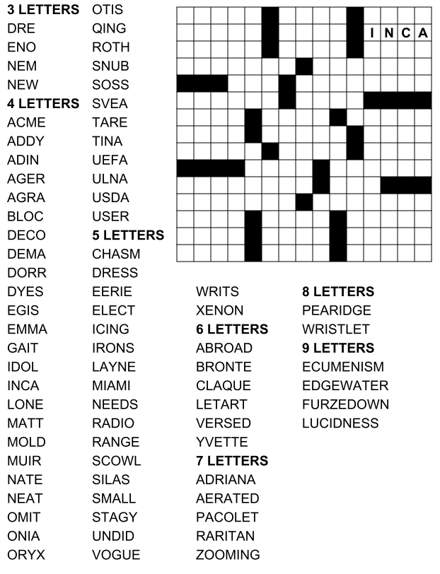 Try our unique free collection of crossword fill in printable with two sizes - 15x15 and 21x21!