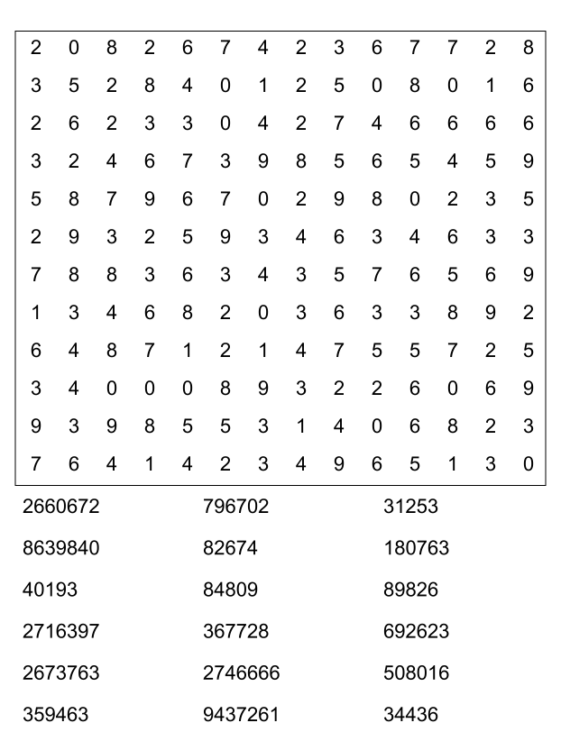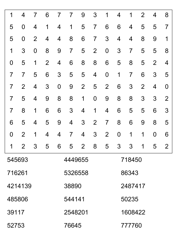 Sopa de números (sopa de letra de numeros) para imprimir pdf