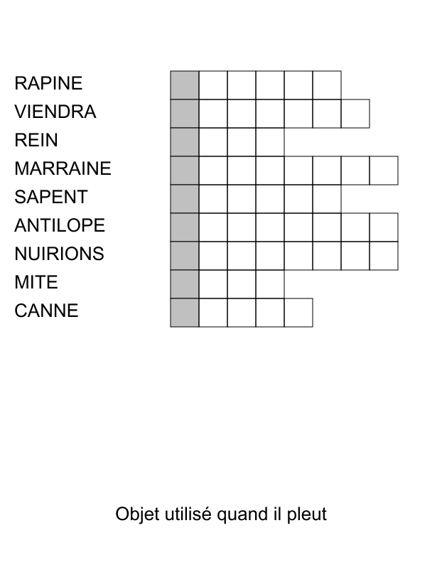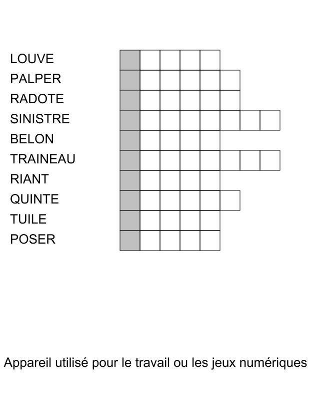 Jeux d'Anagrammes - Règles: Trouvez l'anagramme de chaque mot à gauche, puis lisez les lettres dans les cases grises de haut en bas pour découvrir le mot-clé correspondant à la définition.