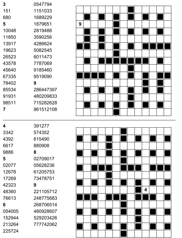 Benvenuti nell'avvincente universo dei Crucintarsi Numerici, una variante stimolante e originale dei classici crucintarsi! Se siete appassionati di enigmi logici e amate mettere alla prova le vostre abilità con i numeri, siete nel posto ideale. In questa sezione, vi immergerete in un mondo di schemi unici dove, invece delle parole, dovrete posizionare strategicamente delle cifre per completare la griglia. Dovrete riempire la griglia con i numeri forniti, seguendo precise regole logiche e schemi prestabiliti. Preparatevi a sfide intellettuali coinvolgenti e a ore di divertimento assicurato mentre vi cimentate nella risoluzione di questi Crucintarsi Numerici, un passatempo che stimola la mente e offre una gratificante sensazione di successo ad ogni schema completato! Esplorate la nostra collezione e iniziate subito a giocare!